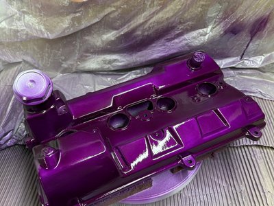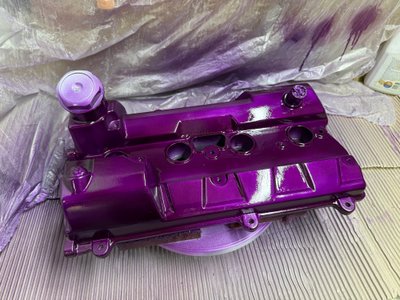 I didn’t like the brush strokes in the cam cover, so I sanded it back and went with VHT Anodised system, here is 4 coats colour and 3 coats of enamel top coat. Need to cure it now, not sure my wife will be happy if I use the oven!